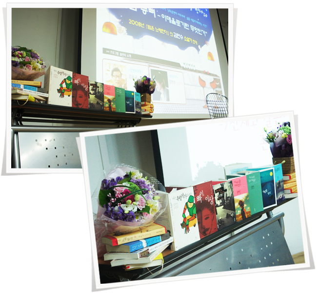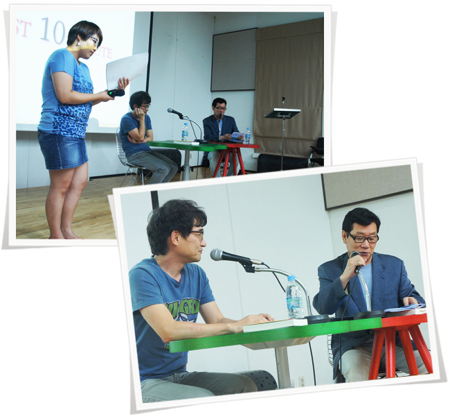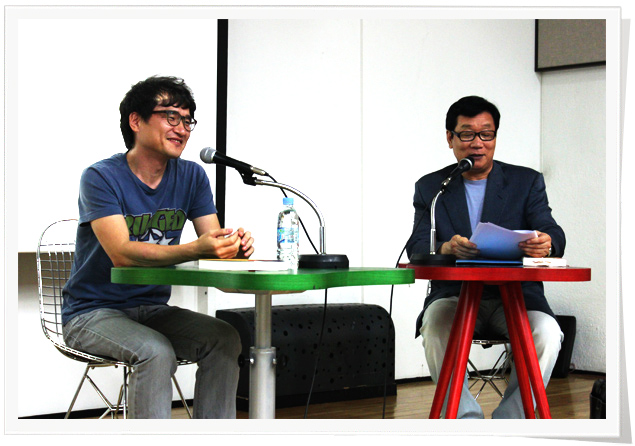▶ 김용규 _ 예. 무슨 말씀인지도 잘 알겠습니다. 참 훌륭하십니다. 왜 잘 아느냐 하면 저도 같은 고민을 늘 한 사람이니까요 저는 선생님처럼 훌륭하지 못해서 늘 시장을 기웃거리고 한 권이라도 더 팔아 볼까 엿보는 사람입니다.