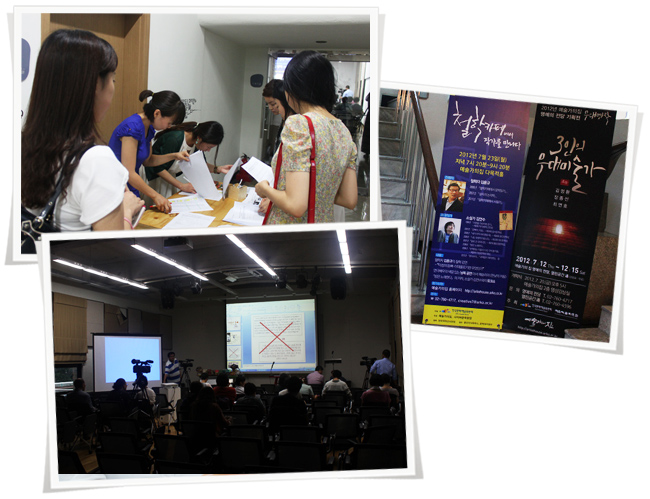 지난해 9월 미국 뉴욕의 맨해튼 주코티 공원에서 시작한 반월가 시위도 그 후 전 세계로 산불처럼 번졌죠. 곳곳에서 역시 폭력보다는 색소폰, 트럼펫, 리코더들로 어우러져 즉흥적인 연주를 하면서 지냈습니다. 결국은 새로운 시위문화로 자발적이고도 비폭력적이고 놀이문화적 요소를 도입하는 이러한 시위에서 우리 김 선생님도 새로운 희망들, 아까 찝찝함이라고 얘기하셨는데, 찝찝함을 견디고 새로운 가능성으로 나갈 수 있는 이런 희망을 보신 것 같은데요. 이런 일들이 비록 미세하고 작은 일이라 할지라도요. 선생님 말씀하신 찝찝함이란 말 참 좋은 말인 것 같아요. 남을 참고 견딘다는 게 참 찝찝합니다. 그러나 그걸 견디고 나도 틀릴 수 있고 남도 맞을 수 있다는 그런 가능성을 늘 가지고 살아가는 것, 이게 윤리이자 폭력을 막을 수 있는 방법이 아닌가 생각을 합니다.