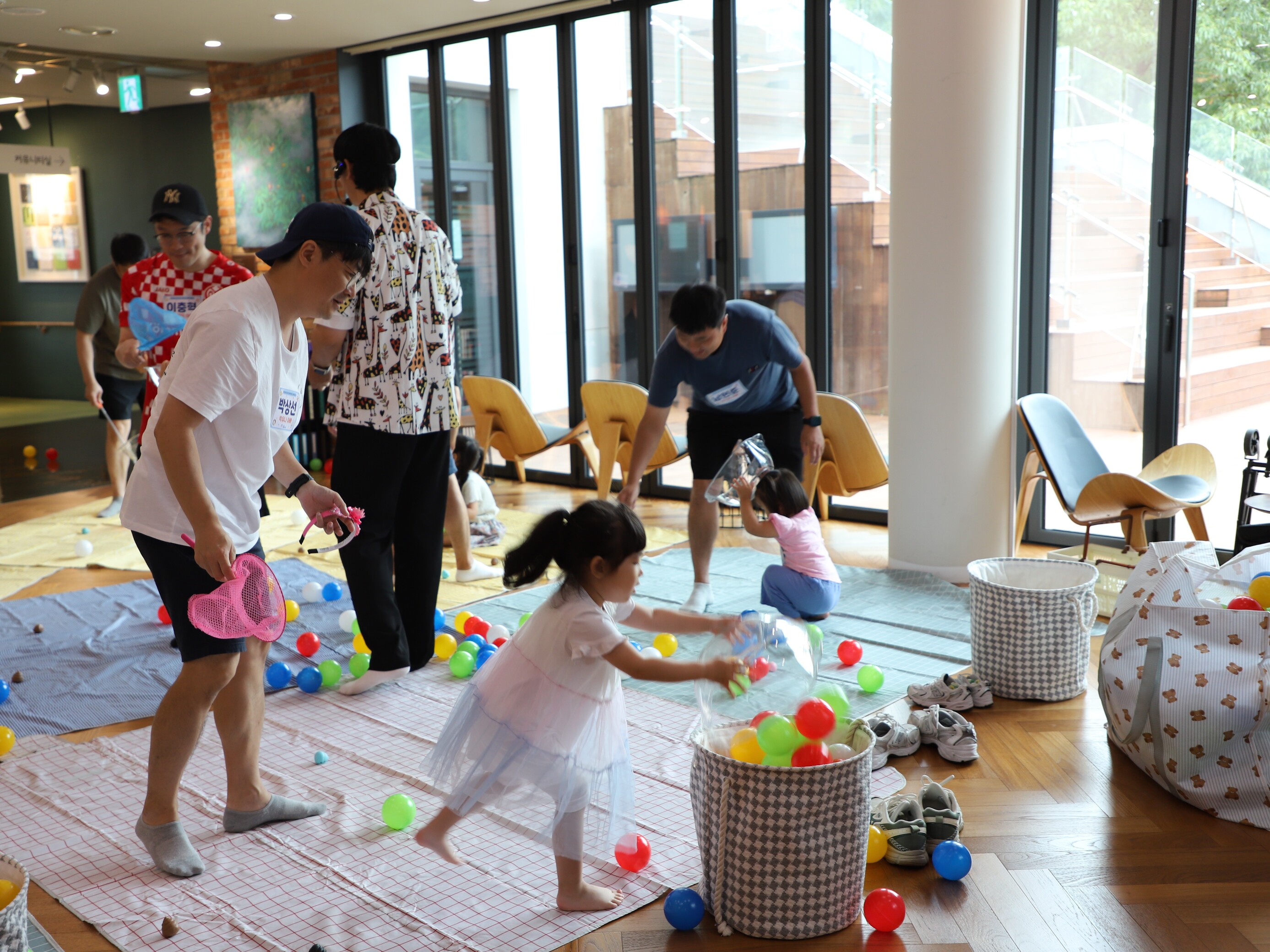 도서관 1층 치유놀이터는 두둥실 구름과 동물 친구들, 나무 오두막집이 있는 놀이터에서