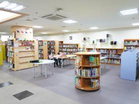 도서관 시설은 1층 어린이자료실, 2층 디지털자료실, 3층 종합자료실, 4층 개인 학습 공간‘서락’으로 구성되어 있으며 특히 독서동아리 활성화 공간‘독서동아리방’, 어린이창의예술 활동 공간‘어린이라운지’등 특화 공간을 운영하고 있습니다.