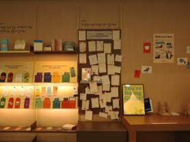 - 음악존 공간에 상주작가의 방을 모티브로, 도서, 음악(LP), 물건 등을 전시한다. 도서관에서 상주작가가 활동 하고 있음을 알리고, 참여형 공간을 만들어 소통의 창구로 활용한다.
